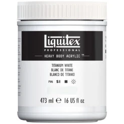 A brilliant white single pigment color, which offers the strongest, most opaque of all whites. Titanium white is an inorganic pigment introduced in the early 1900s from titanium dioxide and is named after Titan. It’s still the world’s primary pigment for whiteness, brightness and opacity